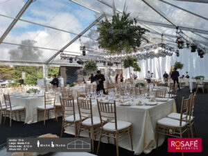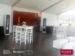 50 personas sentadas en módulo de 5m. 30 en módulo de 3m